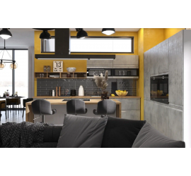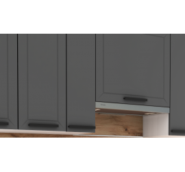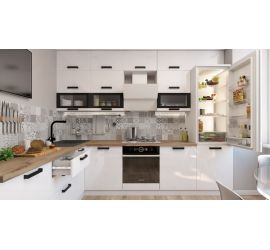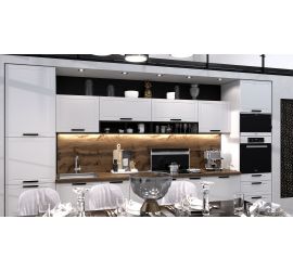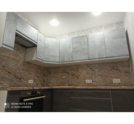 Размер кухни: ширина 2600 мм, высота 2100 мм (Складывается из высоты нижних, верхних модулей и высоты стандартного фартука 600 мм), глубина по столешнице 600 мм