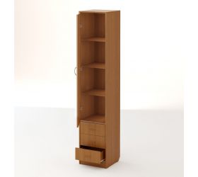 Пенал с тремя выдвижными ящиками отличается простотой и лаконичностью. За дверью находятся полки, что делает пенал очень вместительным. Небольшие размеры пенала позволят разместить его даже в небольших помещениях.
