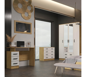 Спальный гарнитур Эко дуб вотан / белый состоит из 12 модулей: