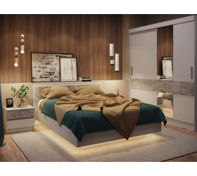 Спальный гарнитур Софи белый / бетон светлый состоит из 5 модулей: